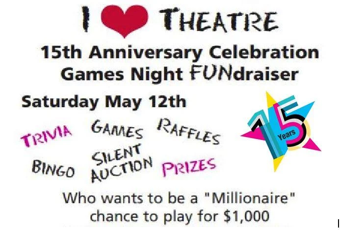 To celebrate our 15th anniversary, and to kick-off our exciting spring season, we are having an I <3 Theatre 'Games Night' fundraiser on May 12th @ 7.30pm