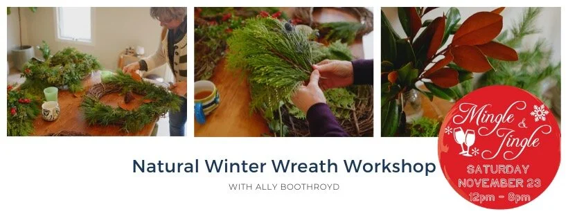 Using nature’s finest, Ally will walk you through the steps to design a one-of-a-kind all natural wreath. Using cedar branches, eucalyptus, magnolia leaves, lotus pods and more – the supplies will be provided and the combinations completely unique to you. This workshop is a part of Bobcaygeon's Mingle & Jingle on November 23rd from 3pm-5pm.